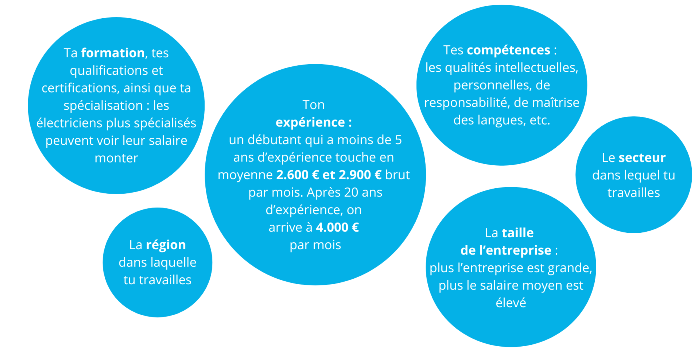 Un électricien débutant gagne en moyenne 2.750 € brut par mois. Ce montant ne tient pas compte des primes de fin d’année, des pécules de vacances et des avantages extra-légaux.