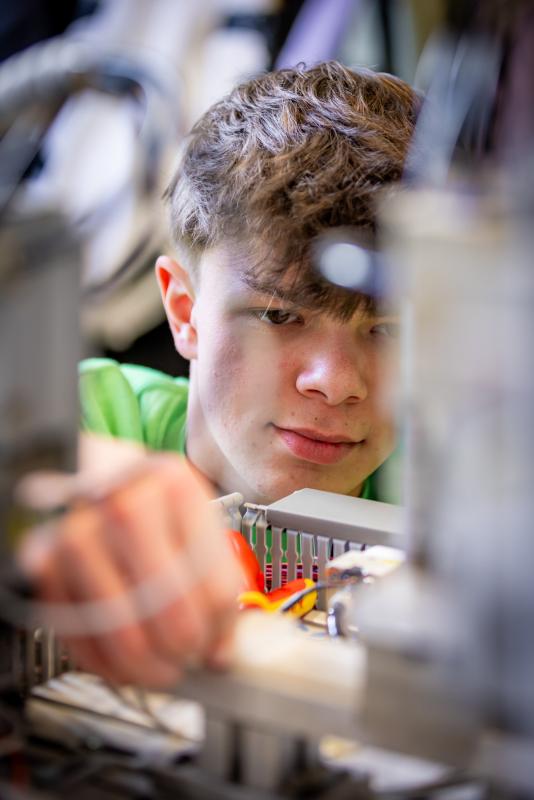 “Ik woon in Nederland, maar ik wou per se naar deze school om de beste opleiding tot elektrotechnicus te krijgen. Enkel ben ik bijna een uur onderweg, maar dat heb ik ervoor over. We hebben in de tweede graad uitgebreid kennisgemaakt met huishoudelijke elektriciteit, nu focussen we op industriële installaties en volgend jaar wil ik een zevende specialisatiejaar programmeren volgen.